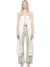 Cotton- and viscose-blend satin dress-style top. · Sweetheart neck · Self-tie straps at chest · Open front · Fixed spaghetti straps · White stitching at back collar · Full satin twill lining Supplier color: Off white Body: 57% cotton, 43% viscose. Lining: 100% viscose. Made in Italy 251188F054016