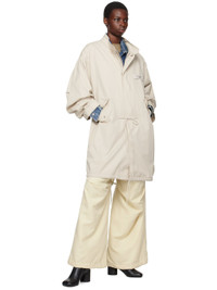 Polyester taffeta trousers. · Belt loops · Drawstring at waistband · Four-pocket styling · Zip-fly · Gathering at knees · White stitching at back waistband Supplier color: Off-white 100% polyester. Made in Italy 242188F087003