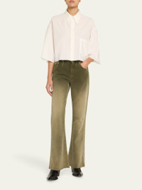 MM6 Maison Margiela flare jeans featuring a raw hem in ombre denim Mid-rise; sits high on the hip Five-pocket style Relaxed fit Full length Button/zip fly; belt loops Cotton/Proviscose® rayon/polyester Dry clean Made in Italy Online Inquiries: BGS21_T6H52| Store Inquiries: #4945605