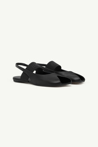 Defined by MM6’s iconic anatomic toe, the slingback is reworked with a wide elastic strap stamped with the Maison's numeric artwork. Crafted in supple leather, the open silhouette is supported by a low cylindrical heel for subtle elevation. At the back, the MM6 white stitch line marks the its deconstructive signature. Product Details Item ID S59WP0212P3628T8013 Upper: 100% ovine leather Contrast: 74% polyester 26% rubber Lining: 100% calf leather Inside: 100% calf leather Sole: 100% calf leather Contrast: 100% rubber Sandals in nappa leather Open toe detail Slingback strap Made in Italy