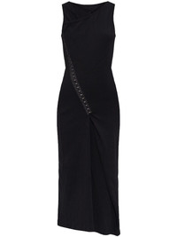 overlapping-panel midi dress Highlights - Black - Cotton blend - Fine ribbed - Round neck - Sleeveless - Overlapping panel - Hook and eye fastening - Pleat detailing - Signature single-stitch logo - Mid-length - Straight hem Made in Italy Composition Cotton 98%, Spandex/Elastane 2%