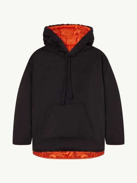 Padded nylon hooded jacket embodying the Maison’s off-kilter approach to outerwear. The garment has a contrast lining, seen at the neck, a drawstring and kangaroo pocket. MM6’s discreet yet distinct signature, a horizontal line of white stitches, is found on the back of the coat. Product Details Item ID S52AM0210S54882900 Details Composition: 66% Polyester 34% Cotton - Lining: 100% Viscose - Pocket Lining: 100% Viscose - Padding: 100% Polyester