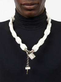 padlock chain-link necklace Highlights - Silver-tone/white - Padlock detail - Key charm - Chain-link detailing - Engraved logo Made in Italy