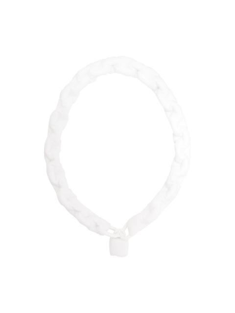 padlock necklace Lock-up as per this white faux leather padlock necklace from MM6 Maison Margiela. Featuring a key on a chain. Imported SIZE & FIT Model measurements Height 5 ft 10 in(1.77 m) Bust/Chest 33.85 in(86 cm) Hips 35.03 in(89 cm) Waist 24.01 in(61 cm) Measurement CIRCUMFERENCE 25.59 in(65 cm) PENDANT LENGTH 3.93 in(10 cm) PENDANT WIDTH 1.18 in(3 cm) WIDTH 0.98 in(2.5 cm)