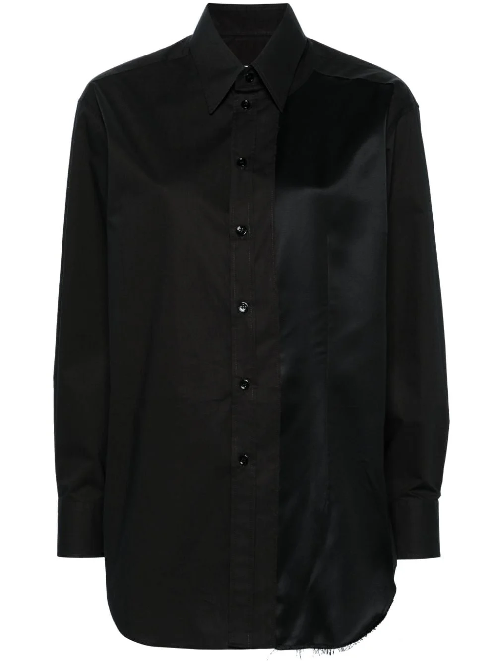 panelled cotton shirt Highlights - Black - Cotton - Poplin texture/satin weave - Distressed finish - Panelled design - Classic collar - Front button fastening - Long sleeves - Buttoned cuffs - Curved hem Made in Italy Composition Cotton 100%, Viscose 100% SIZE & FIT Model measurements Height 5 ft 10 in(1.77 m) Bust/Chest 32.28 in(82 cm) Hips 35.03 in(89 cm) Waist 25.19 in(64 cm) FittingInformation Designed for a relaxed fit, this piece allows for comfort and movement when worn Made from a midweight non-stretch fabric This piece fits true to size – take your usual size