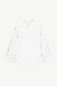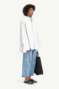 Cut to a modern fit, MM6’s plain and stripy shirt is cut from cotton poplin that falls to a curved hem. The style also features a contrasting sleeve, side slits and button closure. The brand’s discreet yet distinct signature, a horizontal line of white stitches, is found on the back of the garment. Product Details Item ID S52DT0031STZ119961 Composition: 100% cotton Plain and stripy cotton poplin shirt Button closure Patch pocket Contrasting sleeve Curved hem Side slits White stitch line at the back Regular fit Made in Italy Model is 176 cm tall and wears a size 42.