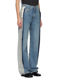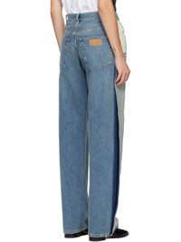 Non-stretch denim jeans. · Fading, whiskering, and subtle distressing throughout · Belt loops · Five-pocket styling · Zip fly · Exposed outseams · White stitching at back · Logo patch at back pocket · Logo-engraved silver- and copper-tone hardware · Contrast stitching in tan Supplier color: Blue Body: 100% cotton. Trim: 65% polyester, 35% cotton. Made in Italy 252188F069033