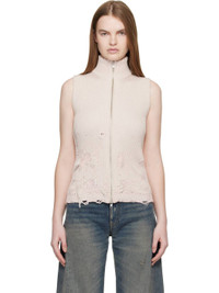 Rib-knit cotton vest. · Distressing and patchwork throughout · Stand collar · Two-way zip closure Supplier color: Light Grey-Rose 100% cotton. Made in Italy 261188F099003