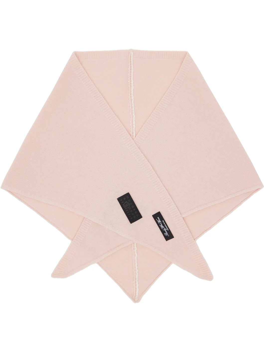 Triangular knit wool-blend scarf. · 7-gauge knit · Logo patches and white stitching at face · Rib-knit trim at edge · L56" x W23" Supplier color: Pink 80% wool, 20% polyamide. Made in Italy 261188F028002