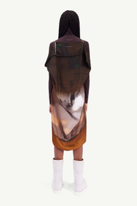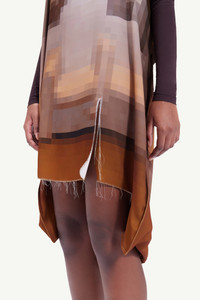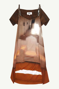 Fluid dress with an asymmetric hem, left deliberately raw and unfinished alongside the straps for an off-kilter approach. It features a hanging silhouette from the back and comes in the Maison's digital pixelated print. MM6’s discreet yet distinct signature, a horizontal line of white stitches, is found on the back of the garment. Product Details Item ID S52CT0719S54935001S Details Composition: Commposition: 100% Polyester