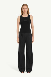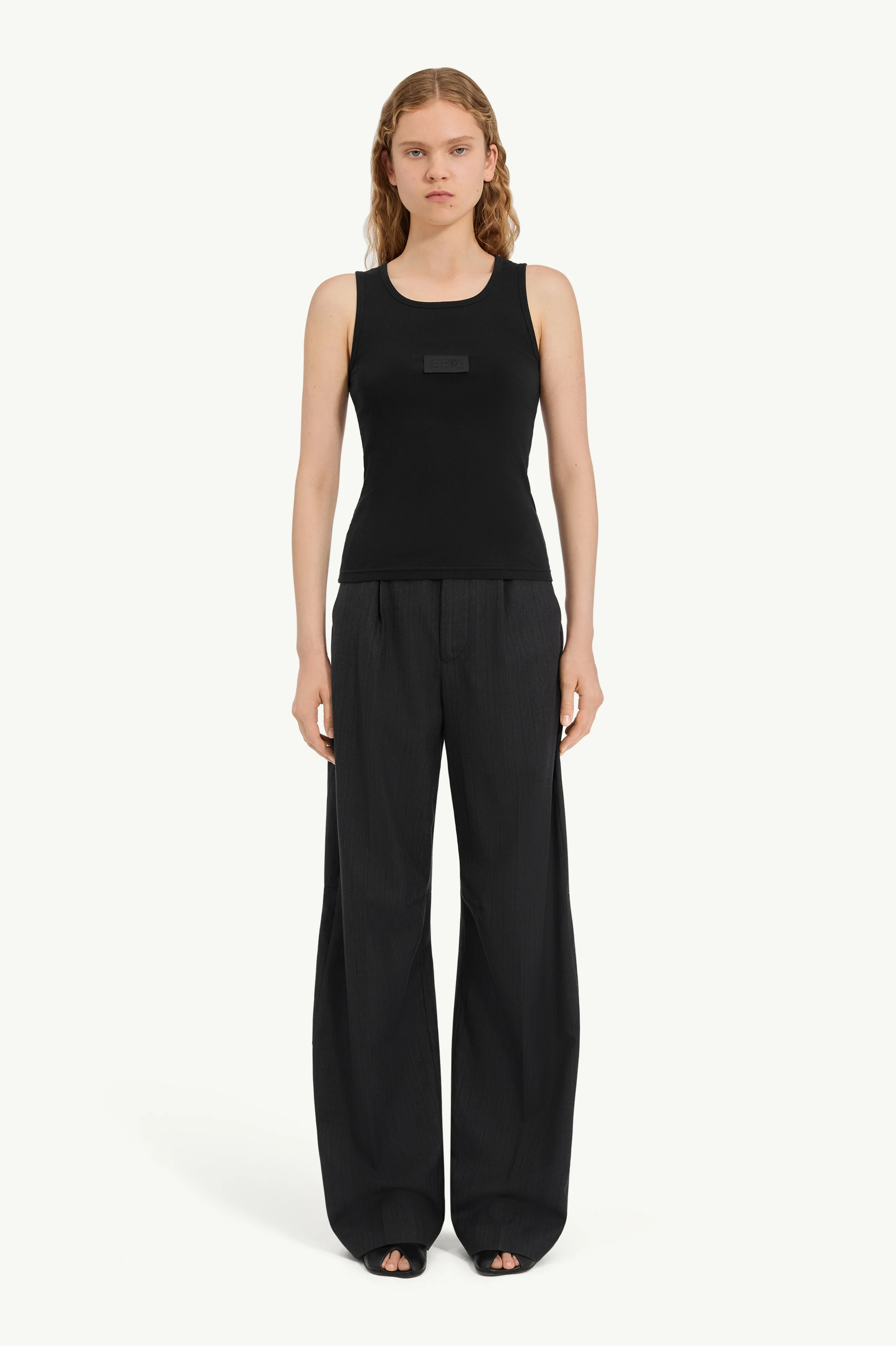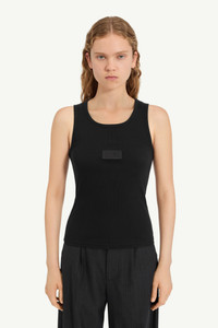 This ribbed jersey tank top is designed with a slim fit and scooped neckline. An overdyed numeric label is stitched at the chest, reworking a utilitarian detail into a statement. At the back, the MM6 white stitch line asserts its signature. Product Details Item ID S52NL0075M20054900 Primary fabric: 98% cotton 2% elastane-spandex Rib jersey Sleeveless Round neck Logo patch on the front White stitch line at the back Made in Italy