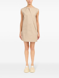 pleat-detail cap sleeved dress Highlights - Beige - Cotton - Pleat detailing - Cap sleeves - Crew neck - Straight hem - Thigh-length Imported Composition Cotton 100%