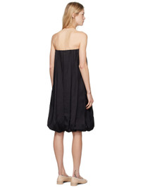 Viscose satin dress. Gathering throughout. · Strapless construction · Elasticized straight neck · Bubble hem · White stitching at back · Fully lined Supplier color: Black Body: 100% viscose. Lining: 78% polyamide, 22% elastane. Made in Italy 242188F052007
