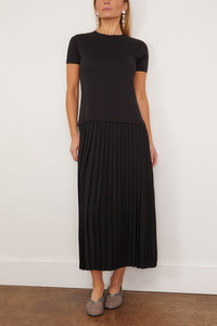 Short Sleeve Midi Dress with Pleated Skirt in Black