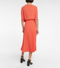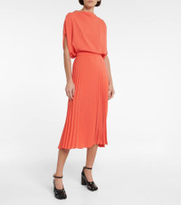 MM6 Maison Margiela refreshes the classic pleated midi skirt in a vibrant red hue for a modern look. The style is made from delicate crêpe and features a high-rise waist. Product Details - Made in Italy - Material: 100% polyester - Care instructions: hand wash - Designer color name: Red - Item number: P00767952 Size & Fit - True to size - Lightweight material - High-waisted - The model seen in the picture is 178cm-5'10" and wearing a size IT 40