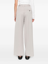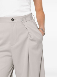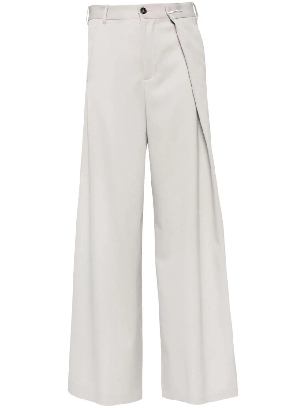 pleated wide-leg trousers Highlights - Light grey - Virgin wool blend - Tailored design - Wide leg - Belt loops - Safety pin detail - Two diagonal pockets to the sides - Rear button-fastening pocket - Signature single-stitch logo to the rear - Front button and zip fastening Made in Italy Composition Outer: Polyester 54%, Virgin Wool 44%, Spandex/Elastane 2% Lining: Viscose 100% SIZE & FIT Model measurements Height 5 ft 11 in(1.8 m) Bust/Chest 33.07 in(84 cm) Hips 37 in(94 cm) Waist 25.59 in(65 cm) FittingInformation Designed with a wide-leg cut, these trousers allow for a close fit at the waist and offer a loose and roomy fit over the leg Made from a midweight stretch fabric, this piece offers elasticity and flexibility when worn This piece fits true to size – take your usual size Washing instructions Dry Clean Only