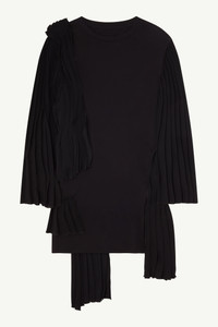 Coton jersey dress with asymmetrical pleated sections creating an uneven hemline. The insubordinate details and floaty pleated sleeves are contrasted with a simple crewneck. MM6’s discreet yet distinct signature, a horizontal line of white stitches, is found on the back of the garment. Product Details Item ID S52CT0733S23588900 Details Composition: 100% Cotton - Secondary Fabric: 100% Polyester