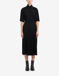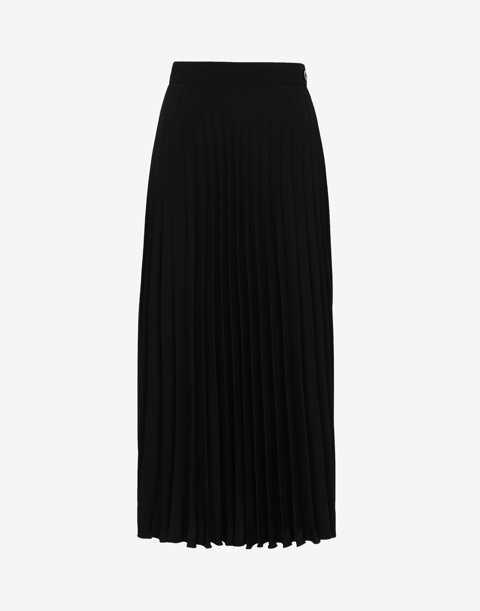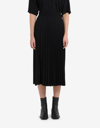 Ankle-grazer skirt featuring a pleated front and smooth back. It has a hidden zip closure with button tab to the side and the Maison's horizontal stitch moniker at the back. Made in Italy. Item details 100% Polyester Crepe Pleated No appliqués Button, zip