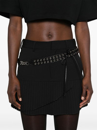 pleated twill miniskirt Highlights - Black - Twill weave - Concealed front fastening - Belt loops - Low-rise - Knife-pleat design - Thigh-length - Two side slit pockets - Two rear jetted pockets Made in Italy Composition Outer: Polyester 67%, Viscose 29%, Elastane 4% Lining: Viscose 100% SIZE & FIT Model measurements Height 5 ft 10 in(1.77 m) Bust/Chest 32.28 in(82 cm) Hips 35.03 in(89 cm) Waist 25.19 in(64 cm) FittingInformation This mini-length skirt is intended to be worn low on the hips Made from a midweight stretch fabric, this piece offers elasticity and flexibility when worn This piece fits true to size – take your usual size Measurement HIPS 36.22 in(92 cm) LENGTH 14.96 in(38 cm) WAIST 29.92 in(76 cm)