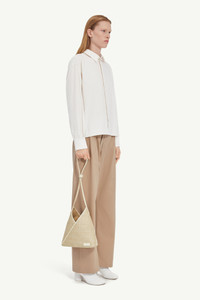 A shirt that pushes the boundaries of conventional design with a striking back pleat that can be worn back to front for a bold, unexpected statement. The pointed collar and buttoned cuffs draw from classic tailoring, while the white stitch line at the back subtly references the MM6 signature. Product Details Item ID S52DT0043M35250001F Primary fabric: 100% cotton Cotton poplin shirt Pointed collar Buttoned cuffs White stitch line at the back Made in Italy
