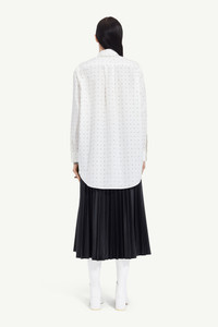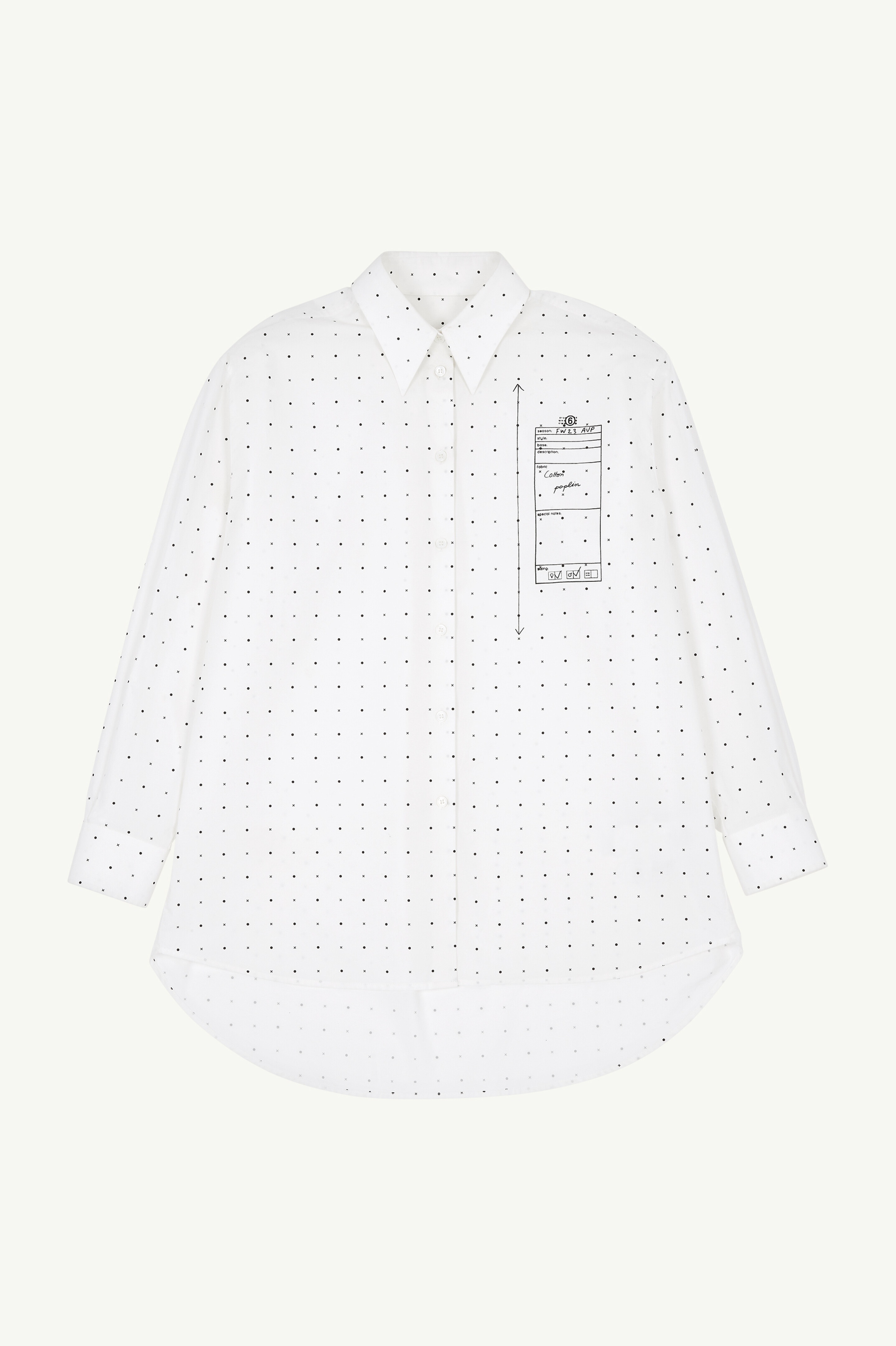 Long-sleeve shirt cut from printed cotton poplin. Features the new pattern print, inspired by Martin Margiela's use of dressmaker's pattern paper applied to garments throughout his collections. Classic design elements are combined with an oversized silhouette. Product Details Item ID S52DT0014S78157001S Composition: 100% cotton Shirt in pattern paper print fabric Printed cotton poplin Pointed collar Button closure Buttoned cuffs Curved hem Side slits White stitch line at the back Loose fit Made in Italy Model 1 is 5'11" tall, Model 2 is 6'2" tall and wears a size 40.