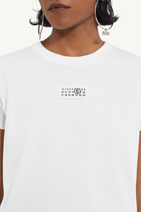 Short-sleeve T-shirt cut from cotton jersey. The classic style showcases a label with the numeric artwork. The discreet yet distinct signature, a horizontal line of white stitches, is found on the back. Product Details Item ID S52GC0296S24311101 Composition: 100% cotton Cotton jersey T-shirt with MM6 numeric signature stitch label Crew-neck White stitch line at the back Slim fit Made in Portugal Model is 5'11" tall and wears a size S.