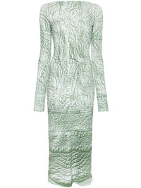 Iguana midi dress Highlights - Green - Stretch-design - All-over quilted-effect print - Slash neck - Long sleeves - Central rear vent - Mid-length - Straight hem Made in Italy Composition Polyamide 73%, Elastane 27% SIZE & FIT Model measurements Height 5 ft 10 in(1.78 m) Bust/Chest 33.85 in(86 cm) Hips 36.61 in(93 cm) Waist 26.77 in(68 cm) FittingInformation Designed for a slim fit that sits just away from the body offering a close yet comfortable fit The vented hem offers movement at the rear Made from a lightweight stretch fabric, this piece offers elasticity and flexibility when worn This piece fits true to size – take your usual size