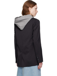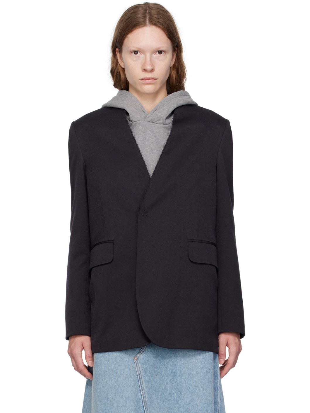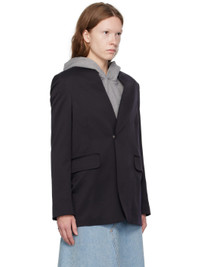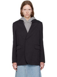Stretch polyester- and virgin wool-blend twill blazer. · Raw edge at Y-neck · Press-stud closure · Flap pockets · Padded shoulders · Four-button surgeon's cuffs · White stitching at back collar · Central vent at back hem · Welt pocket at interior · Full satin lining Supplier color: Dark blue
