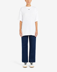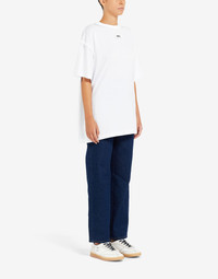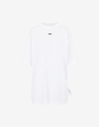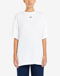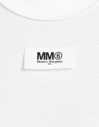 Oversized T-shirt in cotton exploring the Maison's reversed concept with the inside construction visible on the outside. The MM6 logo tab appears on the front. Made in Italy. Item details 100% Cotton Jersey Brand logo Round collar Short sleeves Double face