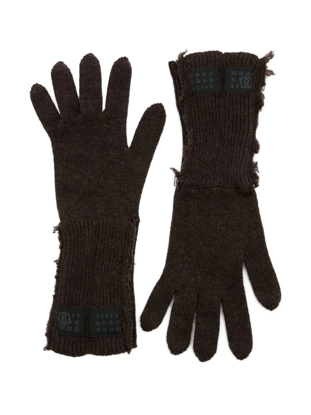 ribbed-knit gloves Highlights - Dark brown - Ribbed detailing - Frayed edges - Elasticated cuffs - Signature numbers motif Made in Italy Composition Wool 80%, Polyamide 20% Washing instructions Read Manufacturer Guidelines