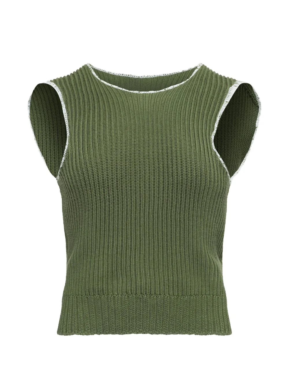 ribbed stitch sleeveless tank top Highlights - Olive green - Ribbed knit - Contrast edging - Rear numeric label - Sleeveless - Round neck Made in Italy Composition Cotton 100% Washing instructions Read Manufacturer Guidelines