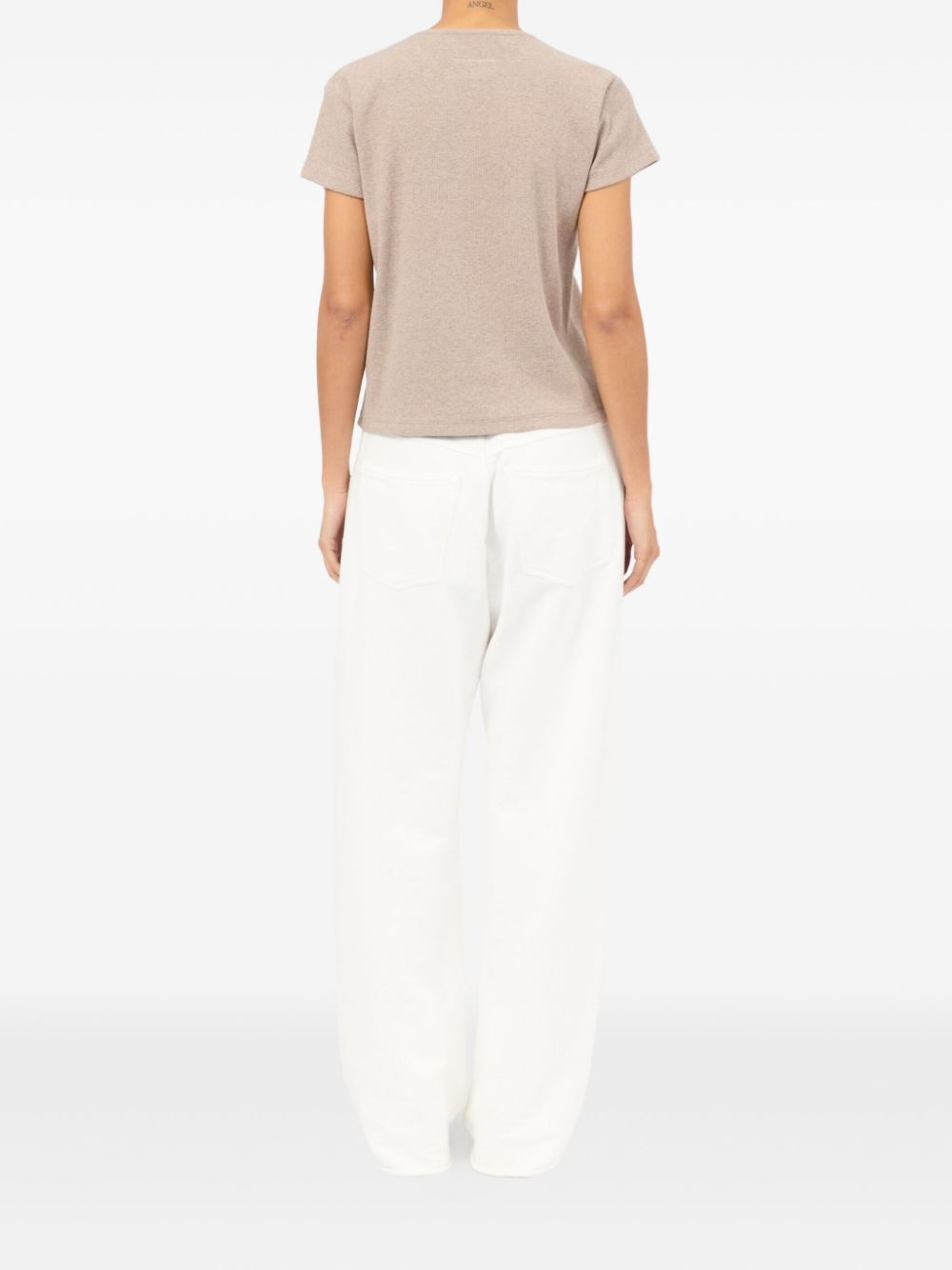 Numbers-print T-shirt Highlights - Sesame beige - Crew neck - Short sleeves - Straight hem Made in Italy Composition Cotton 76%, Virgin Wool 19%, Spandex/Elastane 5%