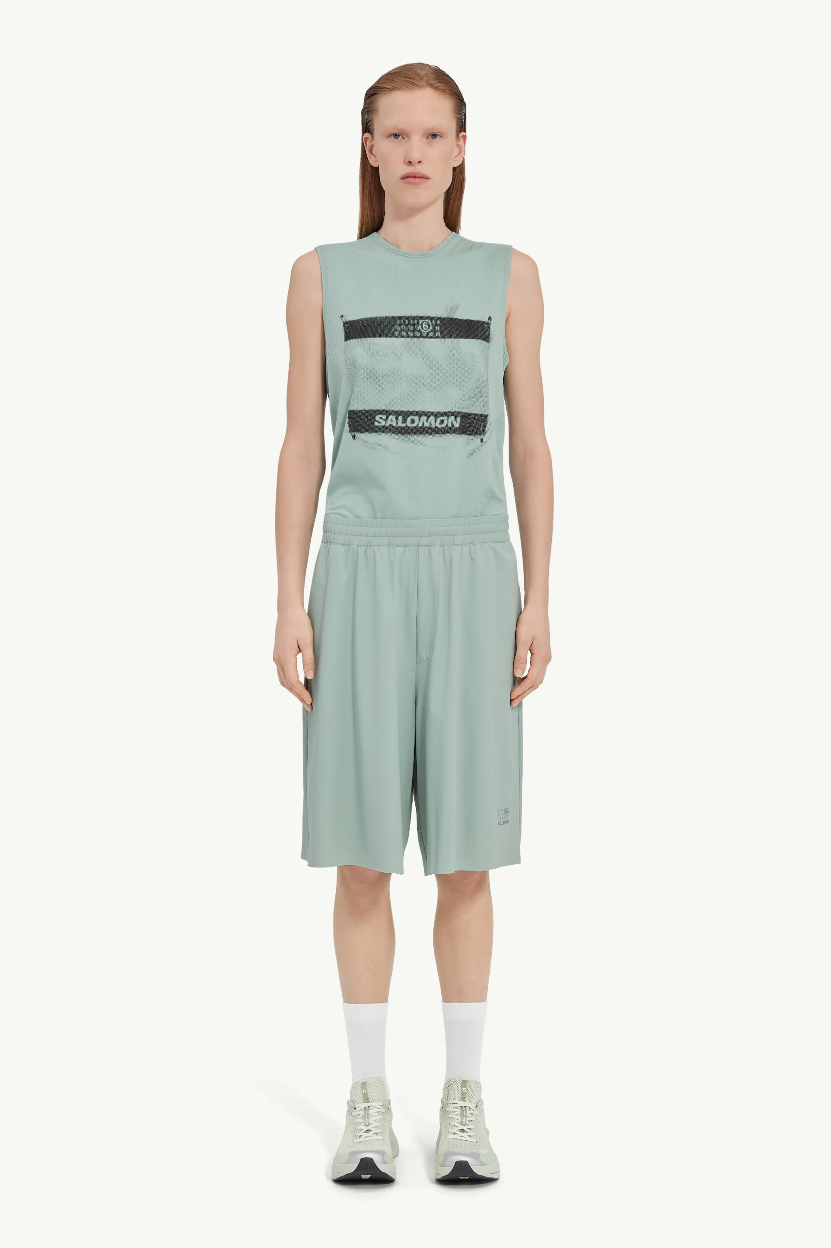 These running shorts, crafted from lightweight and flexible fabric, showcase the MM6 X Salomon collaboration in every detail. The elasticated waist ensures freedom of movement, while the MM6 numeric signature and Salomon label at the front bring an athletic yet progressive spirit. Finished with a back zip pocket for added utility. Product Details Item ID S52MU0131M35417700 Primary fabric: 85% nylon, 15% elastane-spandex Running fabric short Elasticated regular waist MM6 numeric signature and Salomon label at the front Raw-edge hem Side pockets White stitch line at the back Zip pocket at the back
