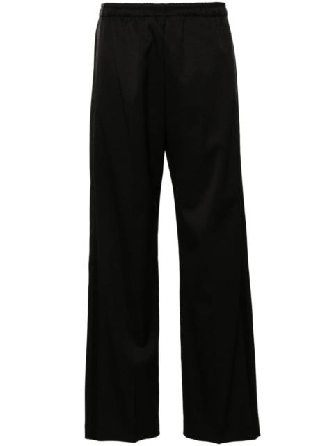 stripe-detail straight-leg trousers Highlights - olive green/black - Straight leg - Side stripe detailing - Elasticated waistband with internal drawstring - Two side inset pockets - Pressed crease - Signature single-stitch logo - Rear welt pocket Made in Italy Composition Outer: Polyester 54%, Virgin Wool 44%, Elastane 2% Lining: Viscose 100% SIZE & FIT Model measurements Height 5 ft 10 in(1.77 m) Bust/Chest 29.92 in(76 cm) Hips 34.25 in(87 cm) Waist 23.62 in(60 cm) FittingInformation Designed for a straight-leg fit, these trousers allow for a close fit at the waist and an unrestricted, comfortable fit over the leg Adjust this piece’s waistband to your preference using the drawstring Made from a midweight non-stretch fabric, this piece offers minimal elasticity when worn This piece fits true to size – take your usual size Washing instructions Dry Clean Only