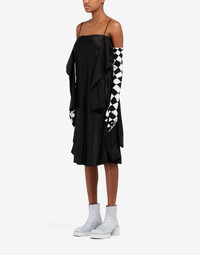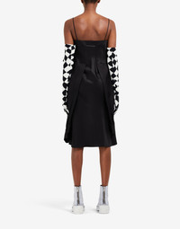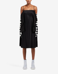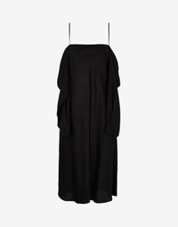 Spaghetti strap dress in satin. Features front and rear hanging sleeves, one of the collection's central themes, inspired by the Surrealist movement. Brings an interactive dimension to the garment by creating a fitted silhouette when tying the sleeves. The lightweight material offers an ideal drape to the design. Item details 100% Viscose, Cotton Satin Poplin Deep neckline Zipper closure Unlined
