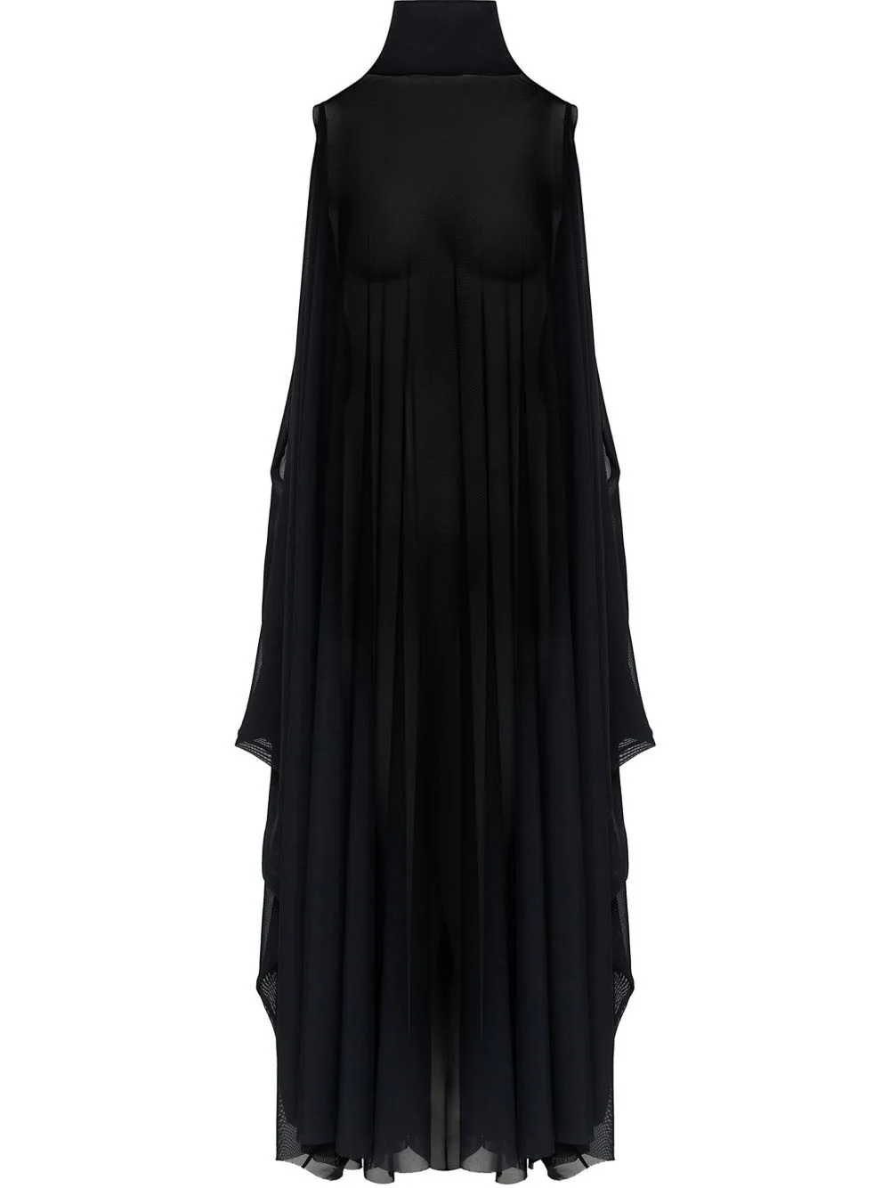 semi sheer maxi dress Highlights - Black - High neck - Cape design Made in Italy Composition Polyamide 92%, Spandex/Elastane 8% SIZE & FIT FittingInformation Designed to be unstructured, offering a loose fit throughout Made from a lightweight stretch fabric, this piece offers elasticity and flexibility when worn