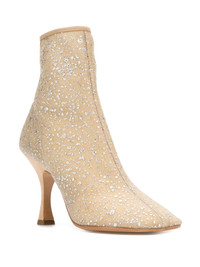 toe-shaped ankle boots MM6 never fails to transform the everyday wardrobe with distinctive, idiosyncratic designs, as showcased by these Biscuit beige and silver-tone leather toe-shaped ankle boots. Featuring a back zip fastening, a branded insole, an ankle length and a high heel. Made in Italy Composition Outer: Polyamide 86%, Polyester 14% Sole: Calf Leather 100% Lining: Calf Leather 100% SIZE & FIT Measurement HEIGHT 5.7 in(14.5 cm) HEEL 3.93 in(10 cm) CIRCUMFERENCE 7.48 in(19 cm)