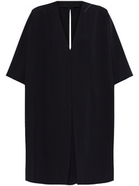 shift mini dress Highlights - Black - Textured finish - Shift style - V-neck - Short sleeves - Front slit - Keyhole detail to the rear - Thigh-length - Straight hem Made in Italy Composition Polyester 100%