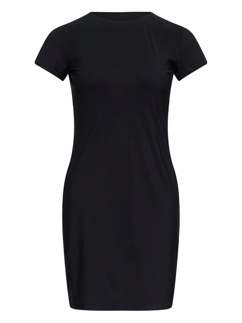short-sleeve mini dress Highlights - Black - Short sleeve - Crew neck Imported Composition Polyamide 73%, Elastane 27% Washing instructions Read Manufacturer Guidelines