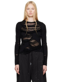 Semi-sheer knit cotton-blend sweater. Distressing and laddering throughout. · Crewneck · Rib-knit hem and cuffs · White stitching at back collar Supplier color: Black 97% cotton, 3% polyamide. Made in Romania 251188F096016