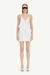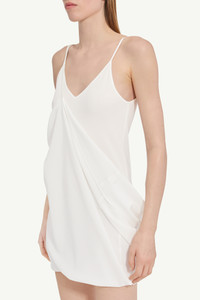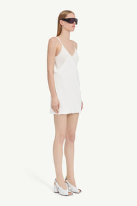 A streamlined V-neck dress in silk crepe de chine, stripped down to essential lines – until it meets an unexpected, deconstructed hem. This subtle irregularity shifts the piece beyond the expected, exploring a nuanced balance of refinement and disruption. Product Details Item ID S62DG0047M35441102 Primary Fabric: 100% Silk Silk crepe de chine maxi dress Adjustable straps White stitch line at the back Made in Italy