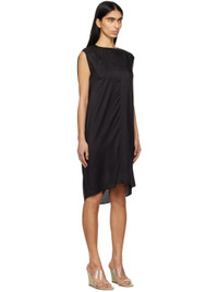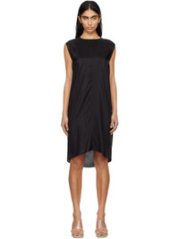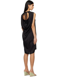 Semi-sheer silk satin midi dress. · Round neck · Central seam at front · Droptail hem · Self-tie strap at back collar · White stitching at draped open back Supplier color: Black 100% silk. Made in Italy 251188F054002