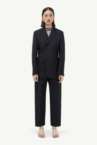 Single-breasted jacket cut from herringbone pinstripe. The classic tailored design has notched lapels, front flat and flap pockets and a back vent. MM6’s discreet yet distinct signature, a horizontal white stich line, is present on the back of the jacket. Product Details Item ID S52BN0113S76430900 Model is 5'10" tall and wears size 40.