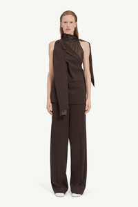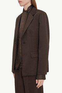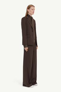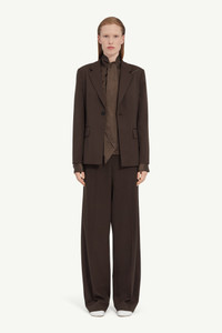 A suit jacket that adheres to MM6’s ethos of modifying traditional forms with its versatile, twisted 90° construction. The single-breasted button closure and flap pockets blend classic tailoring with modern innovation, while the white stitch line at the front highlights the Maison’s distinctive commitment to craftsmanship. Product Details Item ID S52BN0141S47848140 Primary fabric: 54% polyester, 44% virgin wool, 2% elastane-spandex Lining: 100% viscose-rayon Tailoring wool suit jacket Single-breasted button closure Flap pockets Back slit Can be worn twisted White stitch line at front Made in Italy