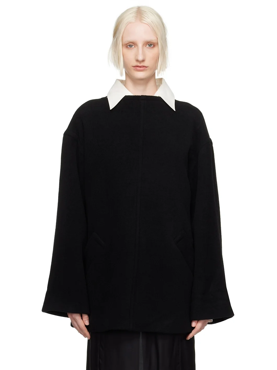 Wool-blend melton sweatshirt. · Boat neck · Central seam at front and back · Welt pockets at front · White stitching at back collar · Viscose twill lining Supplier color: Black Body: 70% wool, 27% polyamide, 3% other fibres. Lining: 100% viscose. Made in Italy 242188F096003