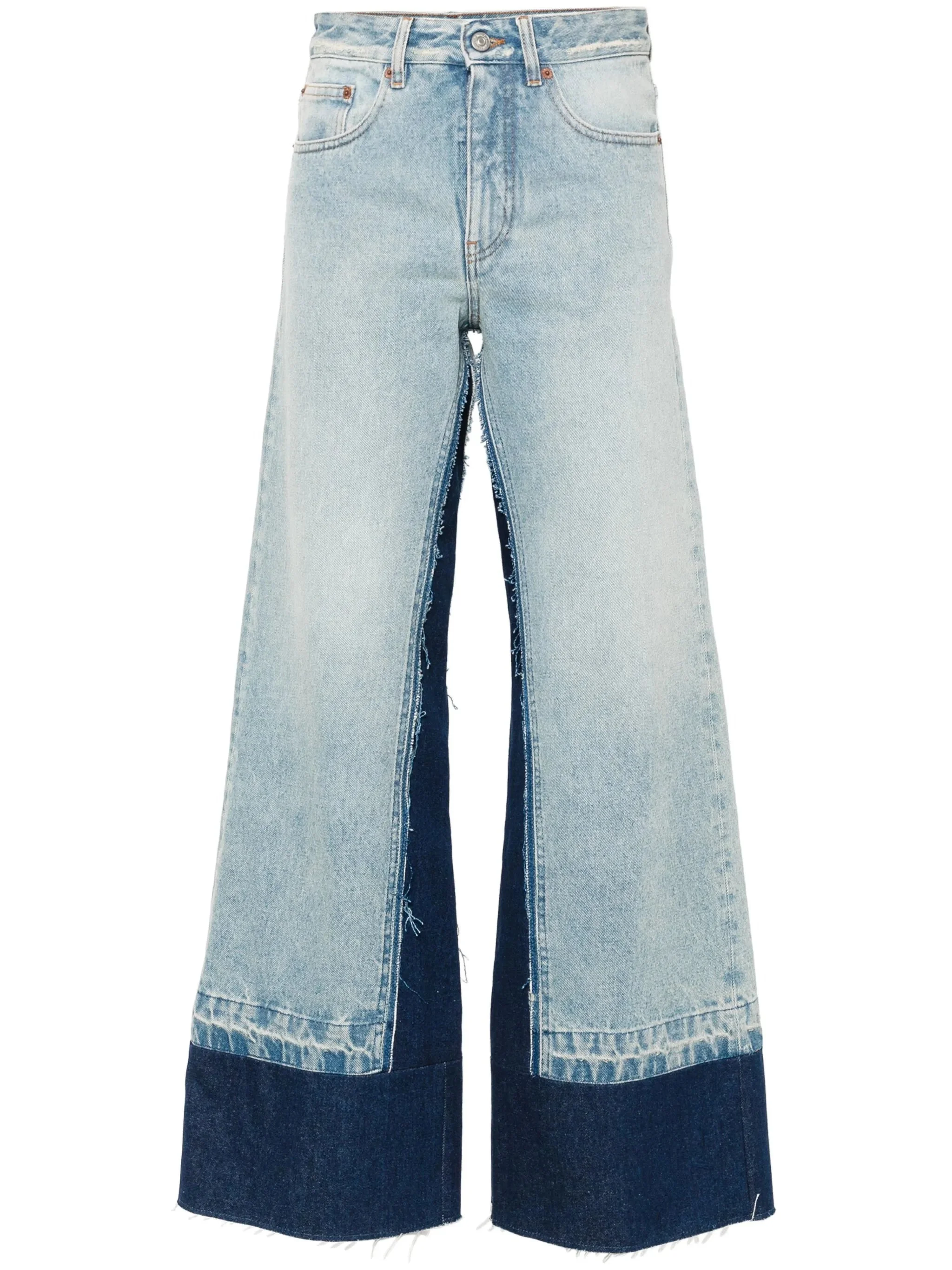 blue cotton denim layered panelled design signature single-stitch logo logo patch to the rear high-rise belt loops concealed fly and button fastening classic five pockets flared hem - Color: BLUE - Made in: Italy - Designer Style ID: S30589 S62LB0176 981 Composition and care Outer Composition Cotton: 100.0%, Lining Composition Cotton: 35.0%, Lining Composition Polyester: 65.0%