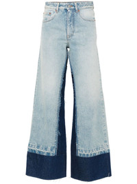 single-stitch jeans Highlights - Blue - Cotton - Denim - Layered panelled design - Signature single-stitch logo - Logo patch to the rear - High-rise - Belt loops - Concealed fly and button fastening - Classic five pockets - Flared hem Made in Italy Composition Lining: Polyester 65%, Cotton 35% Outer: Cotton 100% SIZE & FIT Model measurements Height 5 ft 9 in(1.76 m) Bust/Chest 31.88 in(81 cm) Hips 35.43 in(90 cm) Waist 24.8 in(63 cm) FittingInformation Designed with a wide leg cut, these jeans allow for a close fit at the waist and offer a loose and roomy fit over the leg Sturdy and hard-wearing, this denim piece offers no stretch This piece fits true to size – take your usual size