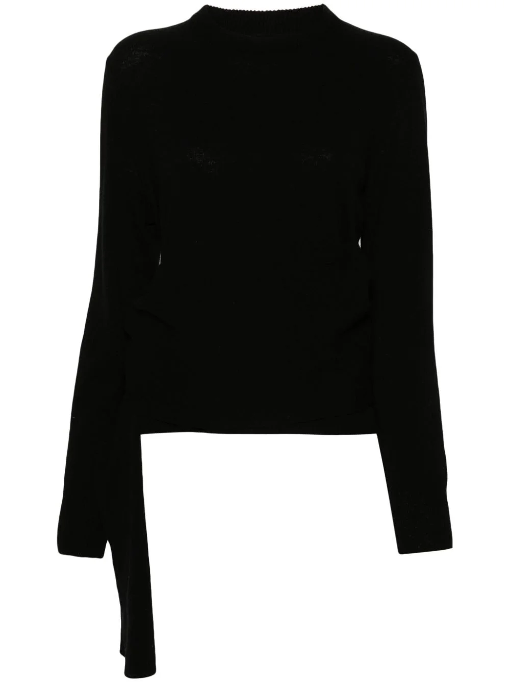 single-stitch logo sweater Highlights - Black - Wool blend - Knitted construction - Crew neck - Long sleeves - Ribbed cuffs and hem - Sash detail - Signature single-stitch logo to the back - Straight hem Made in Italy Composition Wool 80%, Polyamide 20% SIZE & FIT Model measurements Height 5 ft 9 in(1.74 m) Bust/Chest 34.64 in(88 cm) Hips 36.61 in(93 cm) Waist 26.37 in(67 cm) FittingInformation Designed for a slim fit that sits just away from the body offering a close yet comfortable fit The tie fastening gives an adaptable and personalised fit Made with a midweight knit, this piece offers some stretch This piece fits true to size – take your usual size