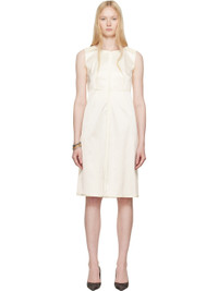 Stretch viscose satin midi dress. Exposed seams throughout. · Converts to blouse · Fold-up hem attaches to epaulet · Round neck · Zip closure · Pinched seams at chest and back · Vent at front hem · Cutout at side seams · Epaulets · White stitching at back collar Supplier color: Off white 96% viscose, 4% elastane. Made in Italy 251188F054018