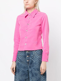 slim-fit long-sleeve shirt Highlights - Flamingo pink - Cotton blend - Signature numbers motif - Pointed flat collar - Long sleeves - Buttoned cuffs - Front button fastening - Curved hem Made in Italy Composition Body: Cotton 97%, Elastane 3% SIZE & FIT Model measurements Height 5 ft 9 in(1.76 m) Bust/Chest 31.1 in(79 cm) Hips 35.03 in(89 cm) Waist 24.4 in(62 cm) FittingInformation Designed for a slim fit that sits just away from the body offering a close yet comfortable fit Constructed from stretch denim, this piece offers a stretch fit with durability This piece fits true to size – take your usual size Washing instructions Machine Wash
